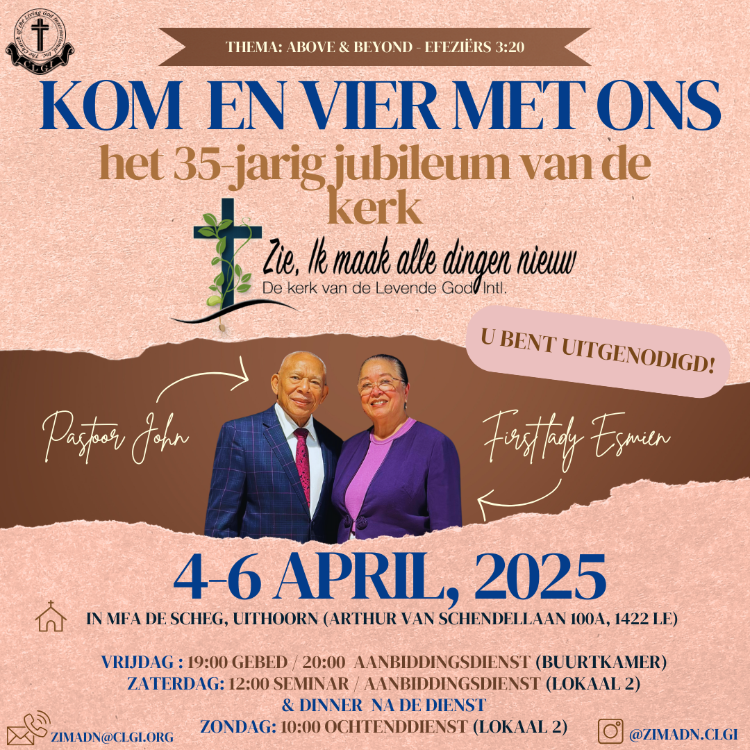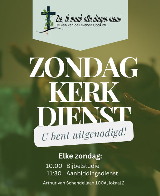 Elke zondag:MFA de Scheg – Lokaal 2 (Arthur van Schedellaan 100A 1422LE Uithoorn) Bijbelstudie: 10:00 Aanbiddingsdienst: 11:30